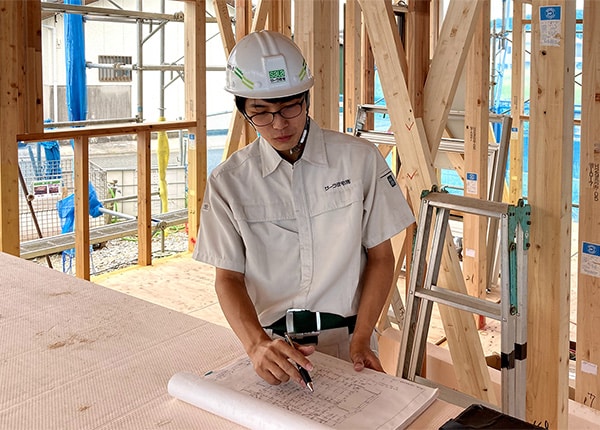 「住まい」とは、長きにわたって「暮らす」場所。その考えのもとに、営業・設計・建設が連携して、お客さまの立場に立った提案を行い、理想の住まいづくりを実現しています。さらに、建てた後の安心のためにお客さま相談室を設け、長期のアフターサービスに力を入れています。